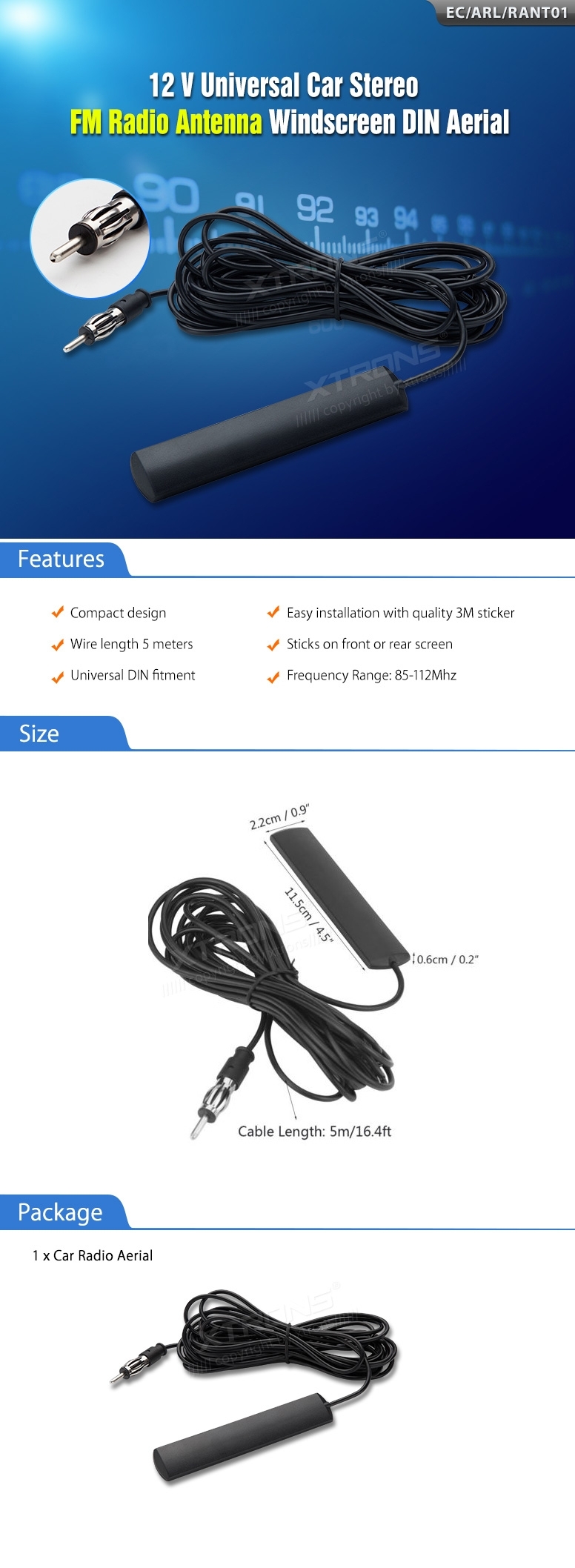 Size: Antenna Dimension (L x W x H): 11.5 x 2.2 x 0.6cm/4.5 * 0.9 * 0.2inCable Length: 5m/16.4ft