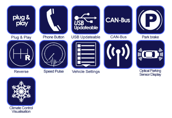 | Manufacturer | Model | Note | Year From | Year To | Headunit | Connection |