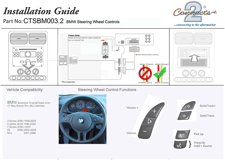 The CTSBM003.2 Steering Wheel Interface allows you to change the factory original headunit to an aftermarket car stereo whilst maintaining the use of your factory stalk/steering controls.