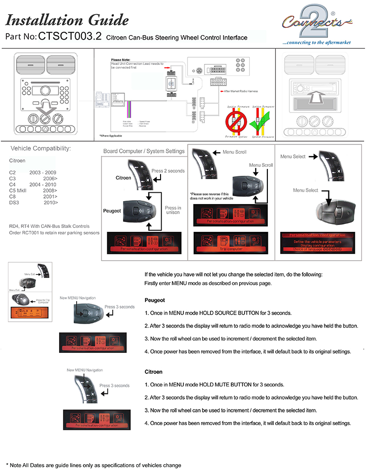 CTSCT004.2 Citroen C2 C3 C4 C5 C8 CAN BUS Steering Wheel Interface Stalk Adaptor