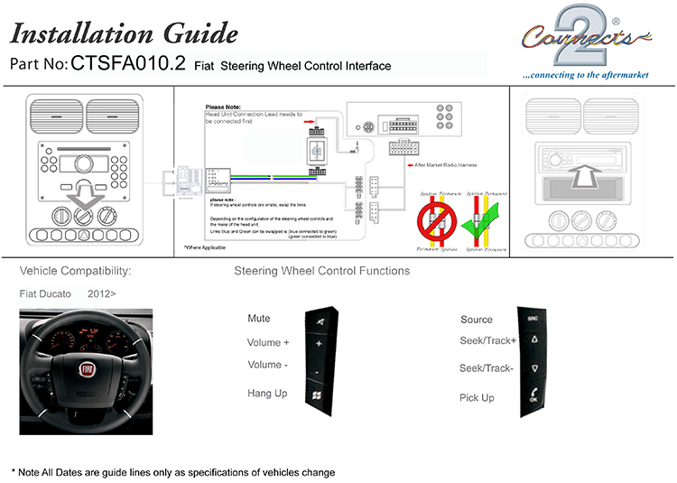CTSFA010.2 Fiat Ducato 2012-14 Car Steering Wheel Interface Control Adaptor