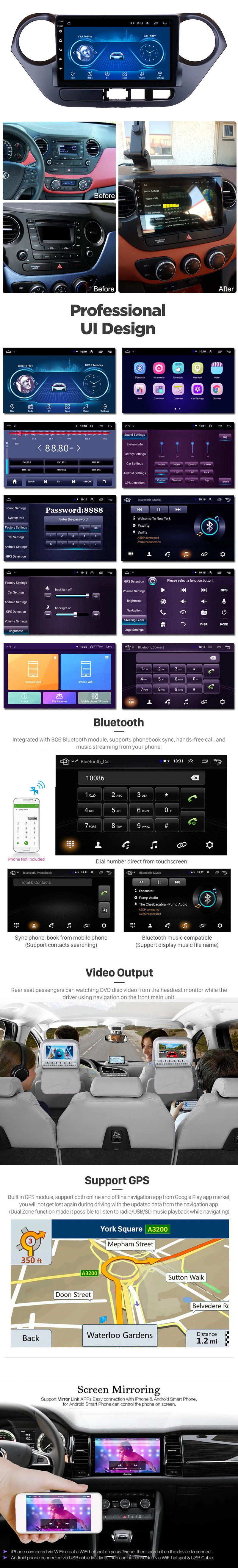 | Description | Hyundai i10 2013-2016 9 inch Android CarPlay Multimedia System Gps Radio Navigation Applicable Models & Years