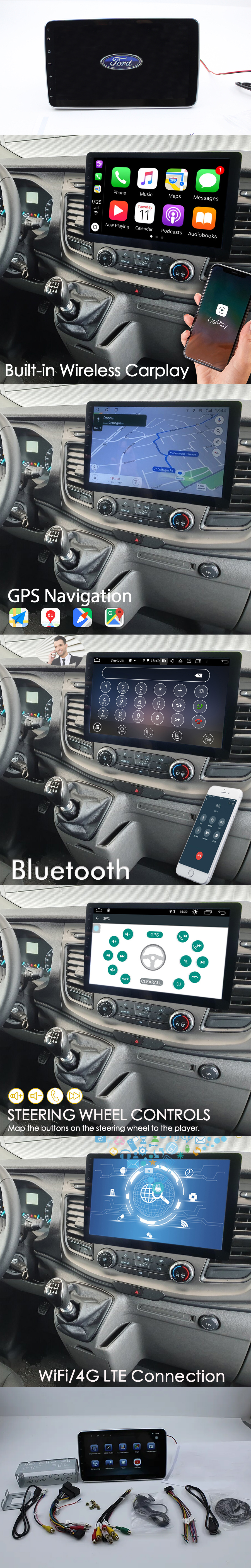 10“ Android CarPlay Multimedia Stereo GPS NAVIGATION Radio Player For FORD TRANSIT/TOURNEO/FIESTA/ECOSPORT 2017-2022