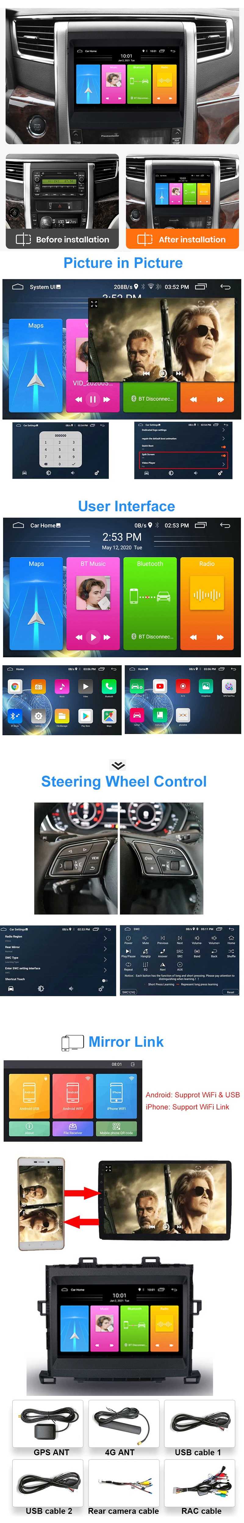 9'' Android Multimedia Carplay Stereo With Bluetooth, Wifi, Usb, Aux Custom Fit For Toyota Alphard 2008-2015