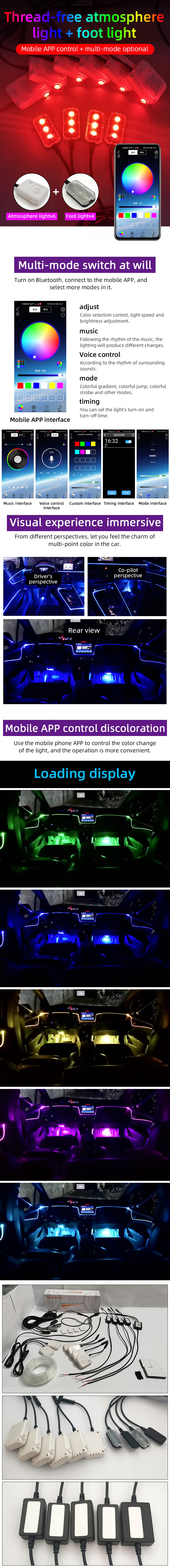 Car Ambient Light NO Threading APP Control RGB LED Strips 64Colors Fiber Optic Band / Foot light