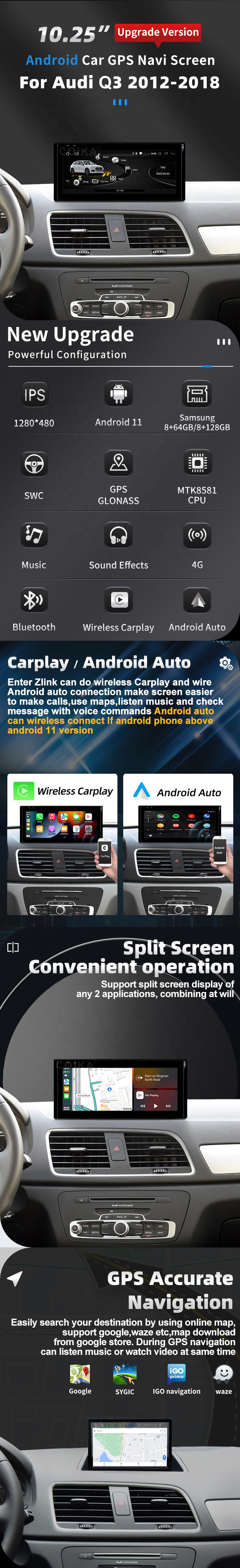10.25" Car Multimedia Player Android System With Built-In Apple CarPlay & Android Auto For Audi Q3 2013-2018