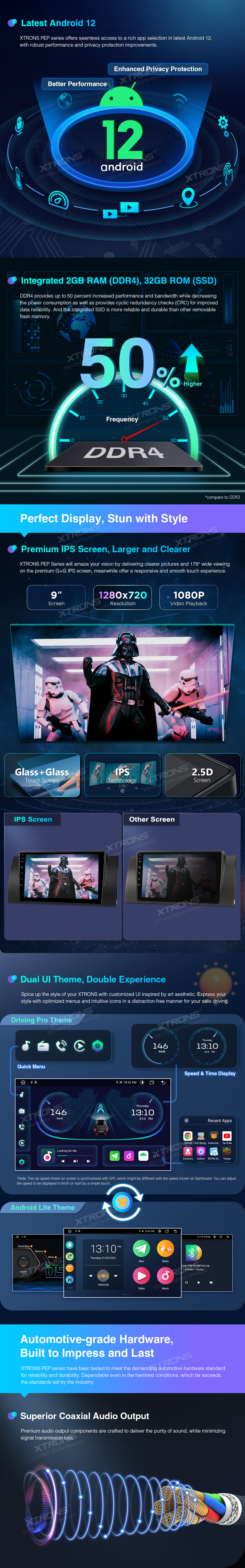 XTRONS PEP series offers seamless access to a rich app selection in latest Android 12, with robust performance and privacy protection improvements.