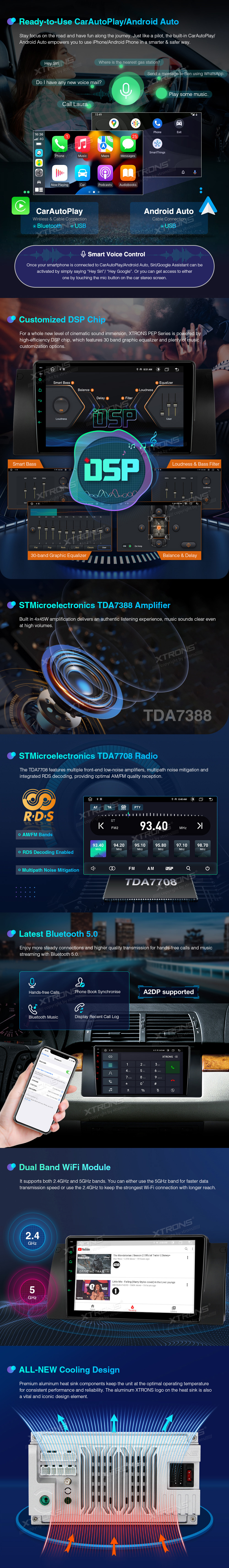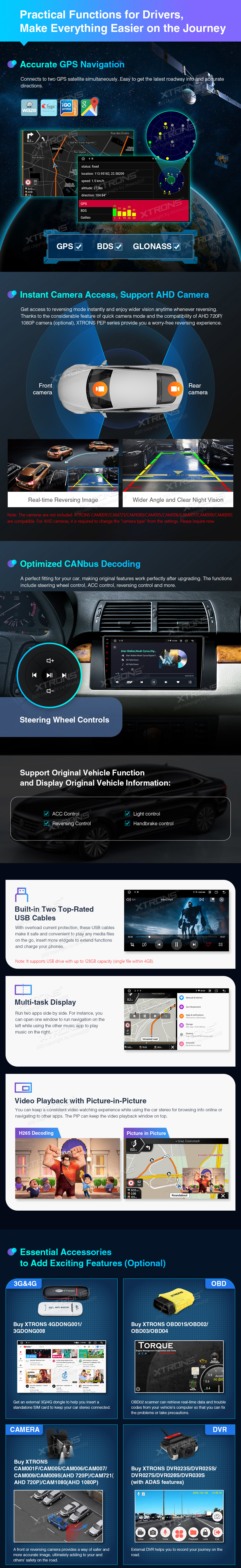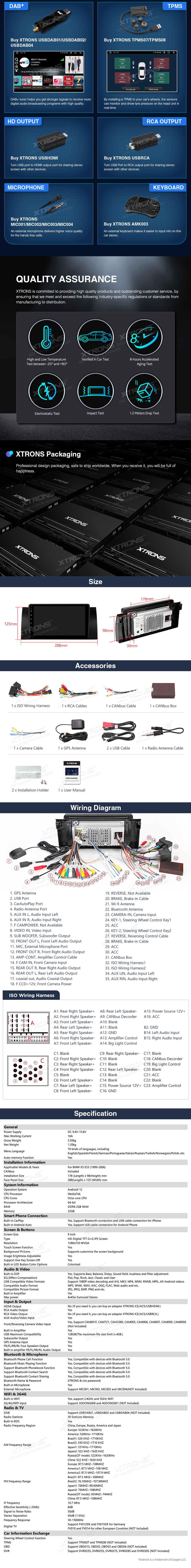 THE NEW OCTA-CORE STAR Octa Core 2.5GHz LATEST ANDROID 12 INTEGRATED 2GB RAM (DDR4), 32GB ROM (SSD) PREMIUM IPS SCREEN, LARGER AND CLEARER DUAL UI THEME SMARTPHONE CONNECTIVITY PROFESSIONAL SOUND QUALITY ENTERTAINMENT EXPERIENCES & FUNCTIONALITY LIKE NEVER BEFORE Automotive-grade hardware Superior Coaxial Audio Output 1080P Video Picture in Picture Dual Band WiFi STMicroelectronics TDA7708 Radio GPS Navigation with Online Maps Latest Bluetooth 5.0 STMicroelectronics TDA7388 Amplifier Two Built-in Top-Rated USB Cables Multitask with Split Screen Instant Rear Camera Access Supports 1920x1080 Reversing Camera All-New Cooling Design CUSTOMISE YOUR EXPERIENCE Explore your options and maximise your system with our range of accessories. Make the most of in-car technology. DAB+ XTRONS USBDAB01/USBDAB02/USBDAB04 are compatible TPMS XTRONS TPMS07 and TPMS08 are compatible OBD2 XTRONS OBD01S, OBD02, OBD03 and OBD04 are compatible DVR XTRONS DVR025S, DVR027S, DVR028S, DVR030S are compatible (DVR030S supports ADAS features) KEYBOARD XTRONS AMK003 is compatible 4G XTRONS 4GDONG001 and 3GDONG008 are compatible CAMERA XTRONS CAM005/CAM006/CAM007/CAM009/CAM001F/CAM721(720P)/CAM1080(1080P)/CAM009S(720P) are compatible MICROPHONE XTRONS MIC001 & MIC002 & MIC003 & MIC004 are compatible HDMI/RCA OUTPUT XTRONS USBHDMI/USBRCA are compatible SIZE