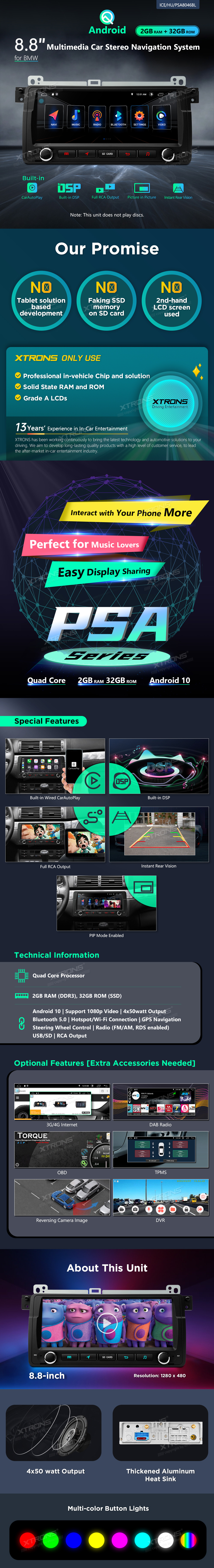 | Description | PSA8046BL Android Multimedia Car Stereo with 8.8" Display Built-in CarPlay Custom Fit for BMW E46 (1998-2006) Applicable Models
