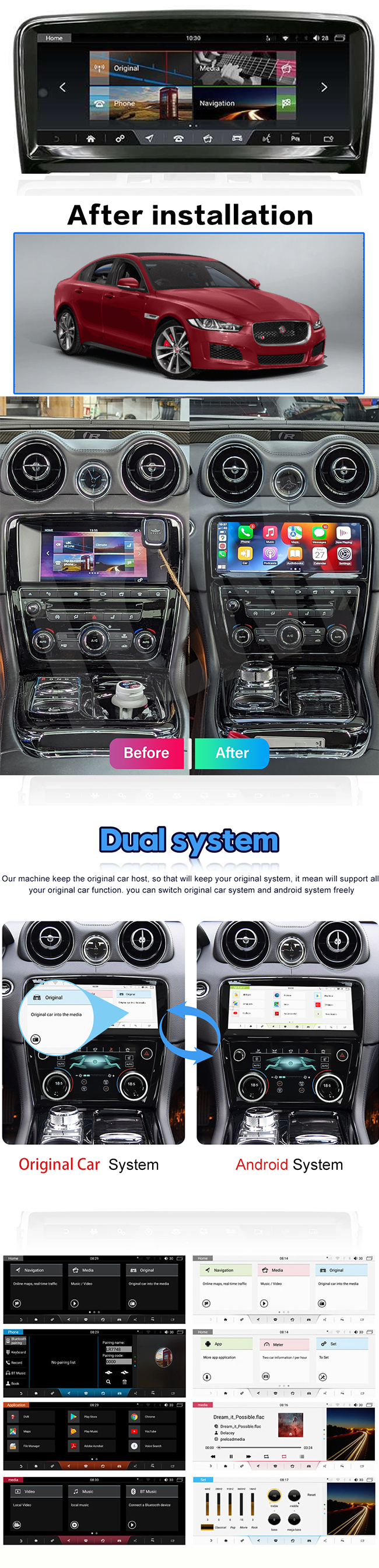 | Description | 10.25" Car Multimedia Player 4G+64GB Android System With Built-In Apple CarPlay & Android Auto For Jaguar XJ 2012-2018 Price includes professional fitting at our workshop in Leyton, London. Note: please allow up to 10 working days to be delivered Car Compatibility