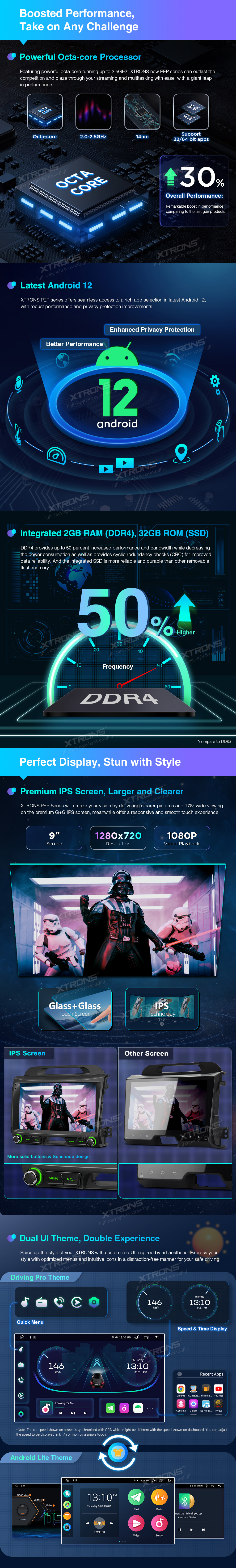 Featuring a powerful octa-core 2.0~2.5GHz processor, XTRONS new PEP series can outlast the competition and blaze through your streaming and multitasking with ease, with a giant leap in performance.