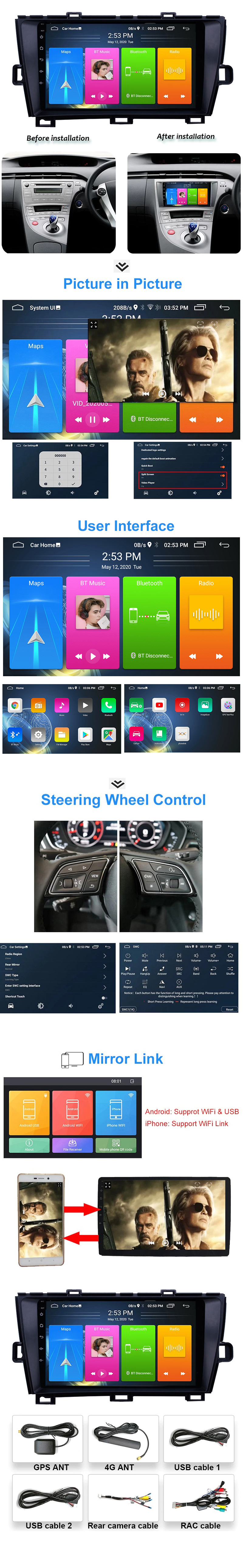 | Description | 9" Touch Screen Android Carplay Stereo Multimedia GPS Navigation System with Bluetooth USB AM FM Radio for Toyota Prius (2009 - 2015)
