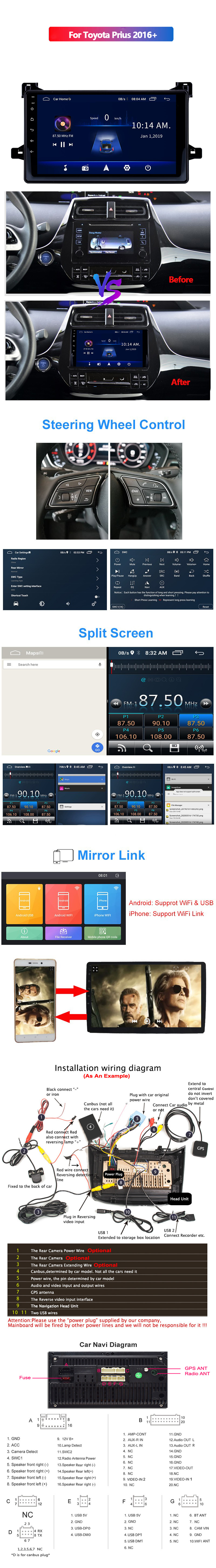 | Description | 9" GPS Navigation Radio Android Carplay Head Unit Car Multimedia Player With Bluetooth, Wifi, Usb, Aux For Toyota Prius 2016 Onwards Car Compatibility