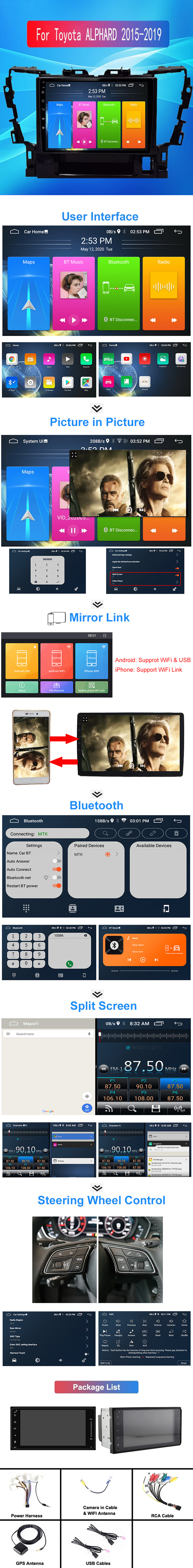 | Description | 10.1 inch Touch Screen Android Carplay Radio for Toyota Alphard 2015 2016 2017 2018 GPS Navigation Car Stereo Suitable For The Following Vehicle: