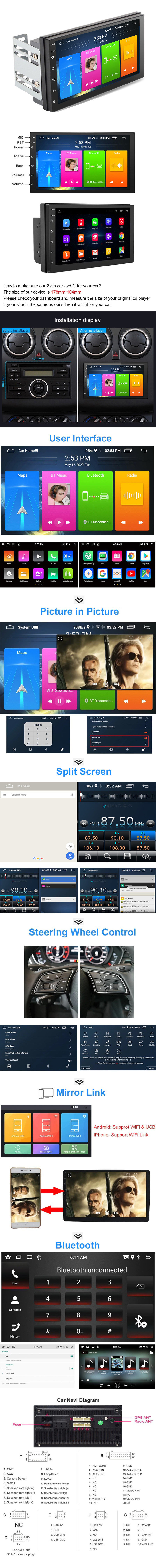 | Description | Universal 7" Android Car Radio GPS Multimedia Universal Navigation Head Unit Slim Back Features: