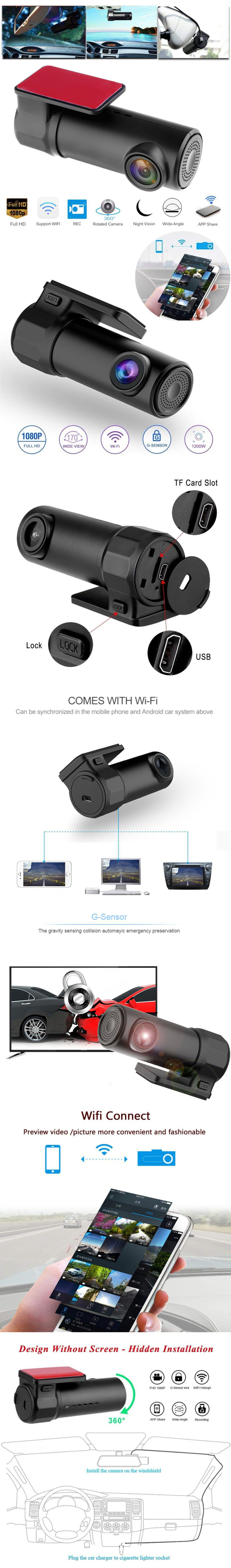 1080P Full HD Front facing Car Dash DVR Night Vision Wide-Angle Dash Cam Driving Recorder with Wifi & App